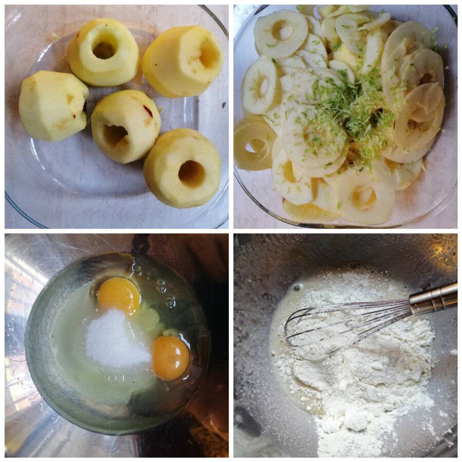 Was de appels, schil ze en snijd ze met een mandoline in heel dunne plakjes. Bestrooi met geraspte schil van een citroen, besprenkel met het sap (twee of drie eetlepels), voeg een snufje kaneel toe en meng voorzichtig.