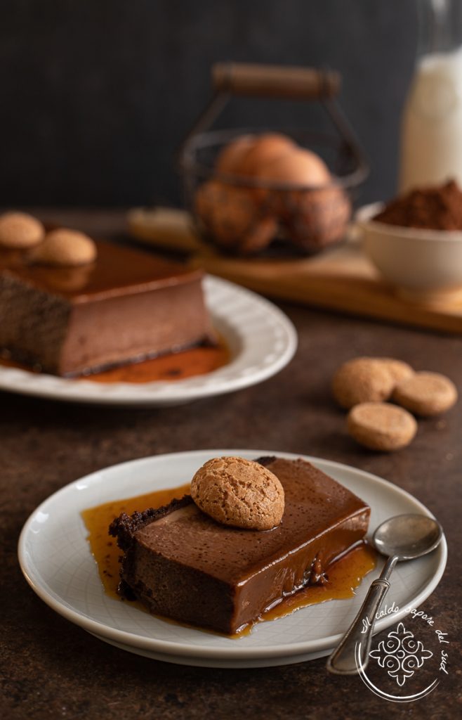 Bonet piemontese origineel recept van chocolademousse met amaretti. De bonet piemontese is een traditioneel dessert uit de Langhe, dat door sommigen ook bunet wordt genoemd; het heeft oude oorsprong en vóór de ontdekking van Amerika bestond er een witte versie, anders dan de huidige cacaoversie. Omdat het een traditioneel recept is, heeft elk gezin zijn eigen variant: sommigen voegen aan de traditionele ingrediënten rum of fernet toe, sommigen houden ervan koffie toe te voegen en anderen niet. Sommigen gebruiken melk en anderen room; kortom, het is een zeer bekend dessert, een fluweelzachte en delicate pudding die sterk doet denken aan de Crème caramel, maar die geen eenduidige interpretatie kent. Mijn versie van de bonet is zonder room, bijvoorbeeld. Het grootmoedersrecept van de bonet piemontese dat ik jullie geef, is echt een grootmoedersrecept, maar van een lieve Milanese vriendin. Ik ben Siciliaans en kende dit dessert alleen van horen zeggen, maar een tijdje geleden was ik in Milaan en als gast van deze vriendin, die een grootmoeder uit Turijn heeft, heb ik het voor het eerst geproefd en werd ik op slag verliefd. Zo vroeg ik haar om wat tips en de ingrediënten om het op mijn blog na te maken: nieuwsgierig naar het grootmoedersrecept van de bonet uit Turijn? Hier is het, probeer het want het is echt een heerlijk, verfijnd en fotogeniek dessert. Voordat je echter aan de slag gaat, herinner ik je eraan dat je, als je op de hoogte wilt blijven van al mijn recepten, mijn Facebook-pagina (hier) en mijn Instagram-profiel (hier) kunt volgen.