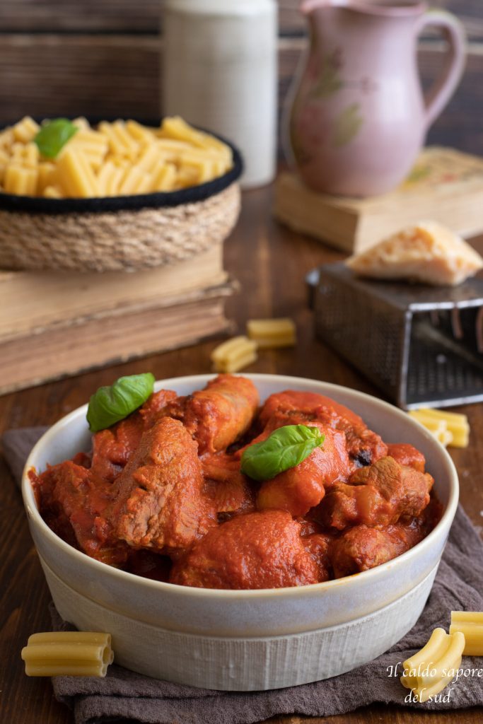 Carnavalsaus op Catanese wijze en pasta “che cinqu puttusa” of pasta met vijf gaten, een van de fundamenten van de Siciliaanse grootmoeders keuken, zoals de Siciliaanse arancini, Siciliaanse rosticceria, de Siciliaanse cannoli en de Siciliaanse cassata.