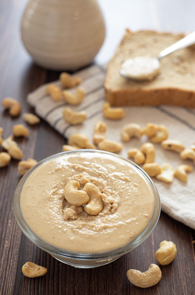 Cashewboter of pure cashewpasta zonder suiker: uitstekend als smeerbare crème light, maar ook als basis voor allerlei soorten gebak en perfect voor hartige gerechten. De pure cashewpasta is een uitstekend alternatief voor de klassieke pindakaas, en je kunt het eenvoudig thuis bereiden met slechts twee ingrediënten, waardoor je een vegan, vegetarische en suikervrije smeerbare crème krijgt, perfect om te genieten bij ontbijt op brood, of ideaal om te verwerken in bereidingen zoals ijs, sorbets en semifreddo, crèmes en koekjes. De bereiding lijkt sterk op die van de pistachepasta of de hazelnootpasta, en je hebt maximaal twee ingrediënten nodig: cashewnoten en een scheutje olie. Verder heb je een goede blender nodig en aan de slag! Voordat we beginnen, herinner ik je eraan dat je mijn Facebookpagina (hier) en mijn Instagram-profiel (hier) kunt volgen om op de hoogte te blijven.