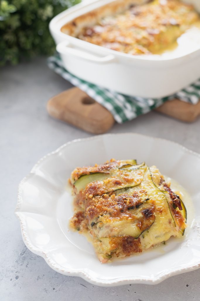 Om dit gerecht te maken hoef je de courgettes niet voor te koken, ze worden rauw gebruikt: snijd ze gewoon heel dun met een mandoline of dunschiller, leg ze in lagen afgewisseld met de vulling en meteen de oven in, zonder extra zout en met heel weinig olie. Ben je benieuwd? Volg me dan in de keuken, we maken het samen en als je nog meer lekkere courgetterecepten wilt proberen, bekijk dan de salade van gegrilde courgettes of de pasta met tonijn en courgettes in het wit. Je kunt mijn Facebookpagina (hier) en mijn Instagramprofiel (hier) volgen om op de hoogte te blijven van al mijn recepten.
