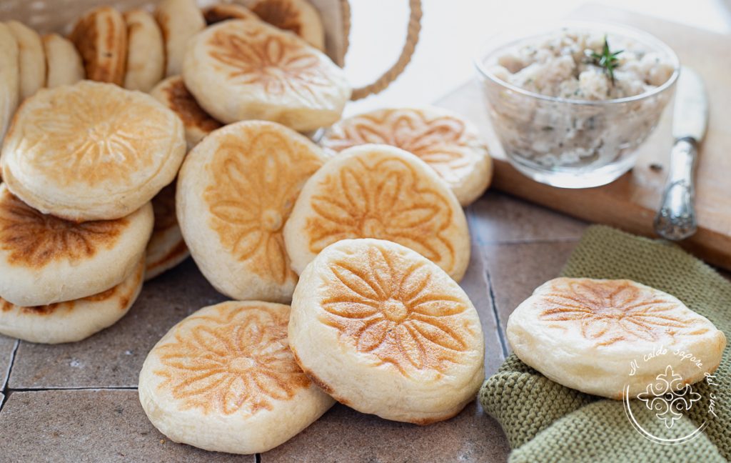 Tigelle met tigelliera of crescentine, grootmoeders recept van de beroemde focaccine uit Modena. De originele Modense tigelle, een soort zachte broodjes gebakken in de pan met een deeg op basis van bloem, reuzel, gist en water, dat me sterk doet denken aan onze Sicilische rosticceria. Vroeger werden de tigelle van oma, of crescentine, gebakken in karakteristieke aardewerken schijven die “tigelle” werden genoemd, vandaar de huidige naam, van dit typische Emiliaanse brood. Deze kleine broodjes zijn zacht en smaakvol met hun karakteristieke afgeplatte vorm; ze zijn typisch voor de Modense Apennijnen, waar men ze at met de typische “cunza”, een mengsel van reuzel, rozemarijn en knoflook, of met vleeswaren, groenten of kazen. Het originele recept van de tigelle, dat is ontstaan als een “arm” gerecht van de bergbevolking, is tegenwoordig een vaste waarde in veel restaurants en trattoria’s en: zelfs in Catania, bijna aan de andere kant van het schiereiland, zijn er meerdere “tigellerie” ontstaan die zachte tigelle en schotels met antipasti als hoofdgerechten aanbieden. Terug naar de traditie: de ingrediënten voor de originele en volkse bereiding van tigelle zijn: bloem, water, zout, bakkersgist of zuiveringszout. Tegenwoordig bestaan er minder rustieke varianten, zachte tigelle-recepten die extra olijfolie, reuzel of boter, melk en suiker toevoegen, en wij zullen er een van deze maken. Natuurlijk heeft elk huishouden zijn eigen, onherhaalbare versie en iedereen geeft de voorkeur aan de eigen receptuur. Ik raad jullie het recept van Maria S. aan, een lezeres uit Modena die mij niet alleen de tigelliera gaf die je op de foto ziet, maar ook haar familierecept. Klaar om het grootmoedersrecept voor Modense crescentine of tigelle te ontdekken? Laten we beginnen, maar voordat je aan het deeg begint herinner ik je eraan dat je mijn pagina op Facebook (hier) en mijn Instagram-profiel (hier) kunt volgen om op de hoogte te blijven van al mijn recepten.