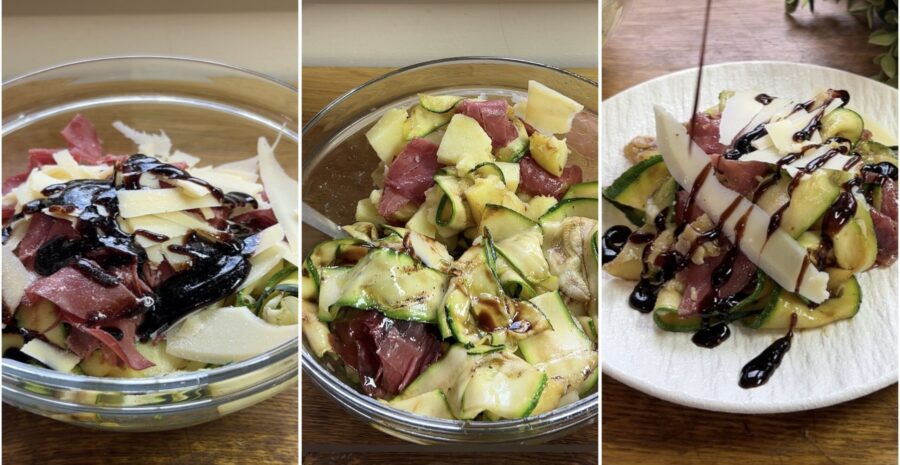 Bereiding van de gegrilde courgettesalade met bresaola en aardappelen