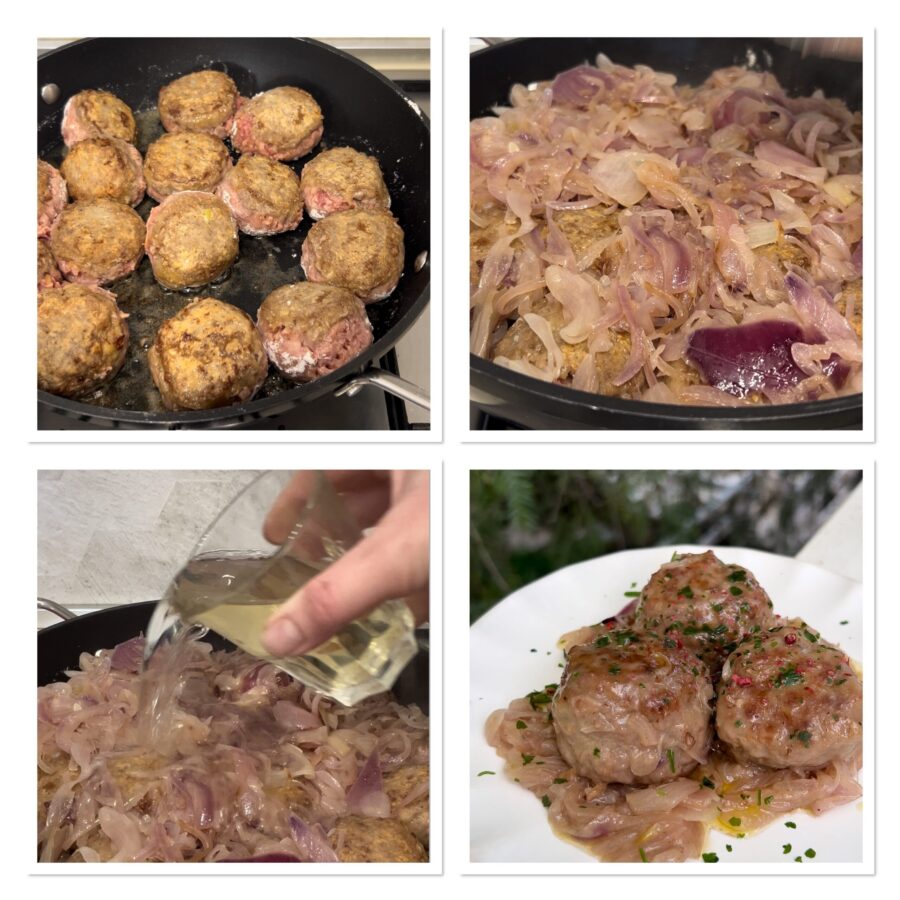 Gehaktballetjes met uien en witte wijn. Sommigen zijn dol op gefrituurde gehaktballetjes, anderen, zoals mijn kinderen, houden van gehaktballetjes in saus en wie gek is op gehaktballetjes uit de oven of in de pan, maar hoe je ze ook maakt, gehaktballetjes zijn vaak de sterren van onze meest smakelijke lunches en diners!