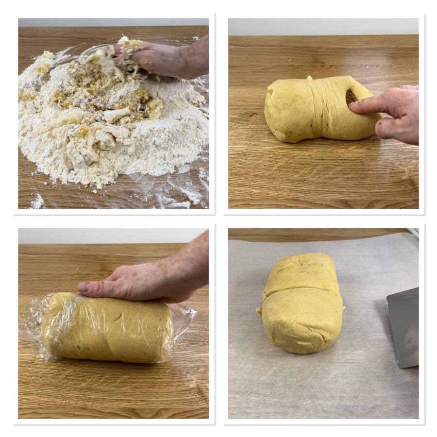 • Wikkel het deeg in vershoudfolie en leg 20 minuten in de koelkast.