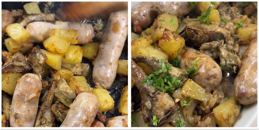 Italiaanse salsiccia met artisjokken en aardappelen