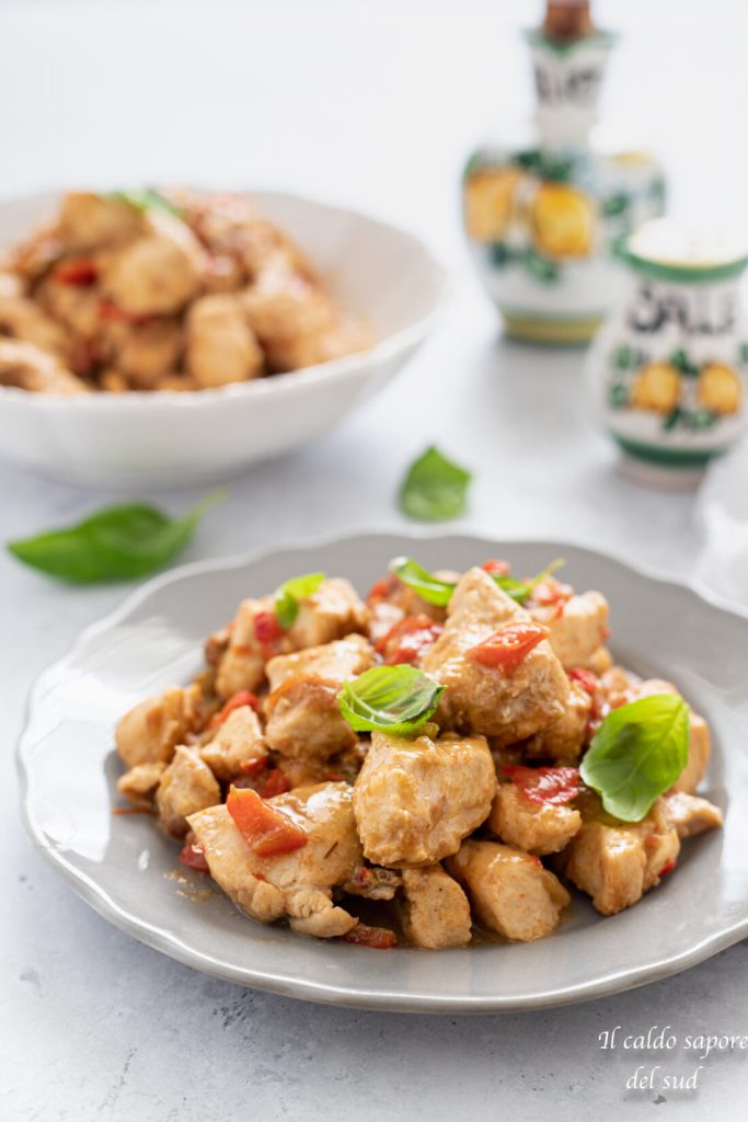Kipfilet met paprika en ui in de pan romig, stukjes zeer malse en smaakvolle kip om in de pan te bakken, het hoofdgerecht waar je bij de eerste hap van zult houden, net zo lekker als de klassieker Pollo peperoni e cipolle in padella maar sneller en praktischer. Als zomerse recepten met kipfilet een zorg voor je zijn, of je gewoon van ovenkip met paprika en uien houdt, is dit het juiste recept, omdat de kipstukjes, zoals bij de mediterrane kipstukjes, heerlijk mals blijven en vergezeld gaan van een verrukkelijk romig sausje.
