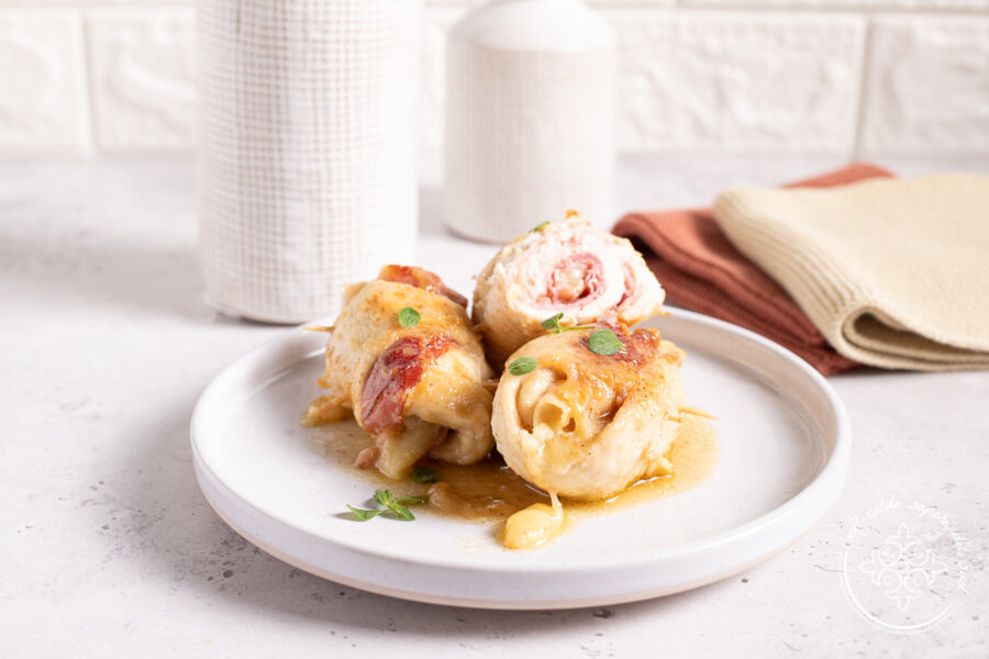 Kiprolletjes met bier met provola en speck. Heerlijke rolletjes gegaard in bier en heel eenvoudig te maken, een eenvoudig hoofdgerecht met kipfilet, snel, smaakvol en met een heerlijk romig sausje om mee te dippen. Om de rolletjes met bier te maken heb je dunne plakjes vlees nodig: je kunt kiezen voor kipfilet zoals ik heb gedaan, varkenshaas, kalf of kalkoen, en je kunt de vulling naar wens variëren. In dit geval koos ik voor gerookte provola en speck, maar je kunt ook ham en kaas gebruiken zoals ik doe wanneer ik de lonza-rolletjes met bier maak, en zelfs groenten toevoegen die je gebakken of gegrild hebt, zoals spinazie, aubergine, courgette, zoals wanneer ik lonza-rolletjes met aubergine maak, enz. Wanneer je de rolletjes met bier bereidt, merk je dat het bier een specifieke nasmaak achterlaat, een intens aroma en een licht bittere toets die helemaal niet storend is, en die jouw kiprolletjes met bier juist nog smakelijker maakt. Wat de romige saus betreft, dat is precies wat de extra smaakvolle toets geeft en het gerecht gewoonweg perfect maakt. En weet je waarom? Omdat de vleesplakjes altijd door bloem gehaald moeten worden voordat je de rolletjes klaarmaakt en juist de bloem, doordat hij het sauzig mengsel van bier, vleessappen en kaas laat indikken, een heerlijke begeleidende saus creëert. Bovendien zorgt de bloem ervoor dat de rolletjes extra mals, zacht en sappig blijven. Laten we nu naar de keuken gaan: als je de ingrediënten al hebt, hoeven we alleen nog maar te gaan koken en samen te ontdekken hoe je de rolletjes met bier maakt. Maar eerst nog even: als je op de hoogte wilt blijven van nieuwe recepten, kun je mijn pagina volgen op Facebook en mijn profiel op Instagram!