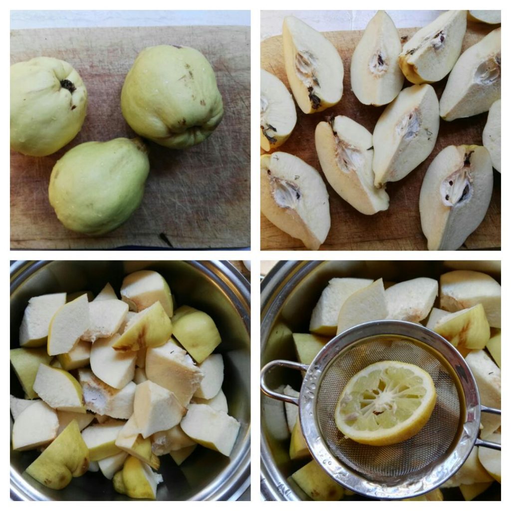 Snijd de kweeperen in stukjes, doe ze in een pan en bedek ze voor de helft met water, voeg het sap van een halve citroen toe. Laat koken totdat het water verdampt is en de kweeperen uit elkaar vallen.