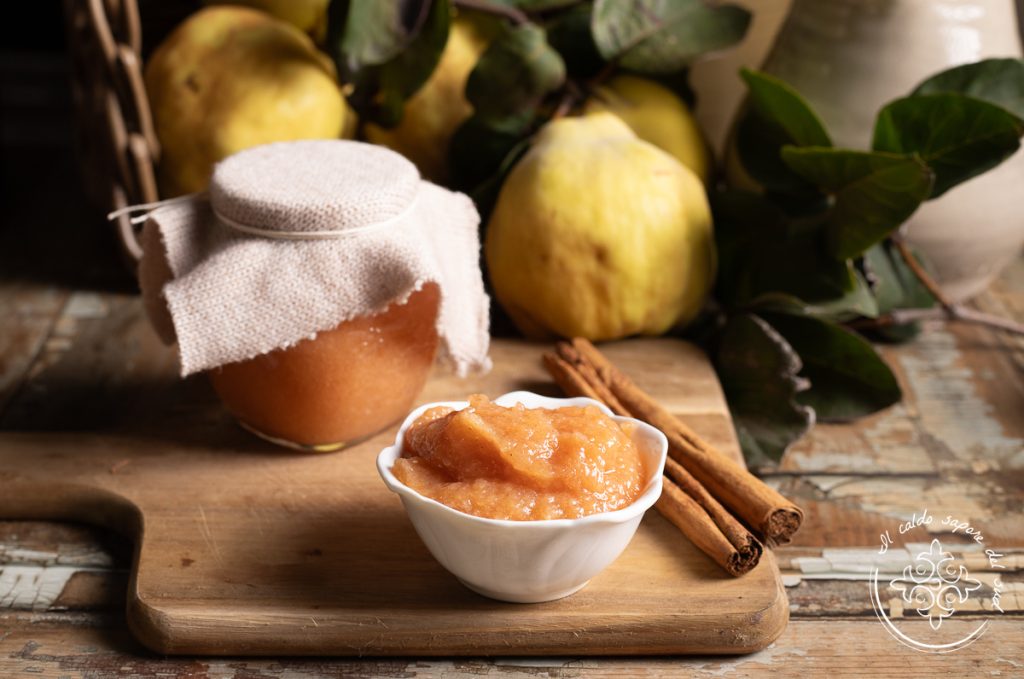 Confettura di mele cotogne, het grootmoeders recept van een klassiek herfstig dessert, dat ook deel uitmaakt van onze verzameling Confetture e marmellate. Weet je wat het verschil is tussen marmellata en confettura? Marmellata wordt gemaakt van citrusvruchten, zoals citroenmarmelade of sinaasappelmarmelade met schil. Confettura daarentegen wordt gemaakt van andere vruchten, zoals appelconfituur, bosbessenconfituur of de klassieke aardbeienconfituur. Dus strikt genomen is “marmellata di mele cotogne” eigenlijk een confettura di mele cotogne. Maar dat maakt ons niet veel uit: het enige wat we weten is dat kweepeerconfituur heerlijk is en, net als cotognata (de stevige versie), perfect te smeren is op brood, te gebruiken als vulling voor gebak en erg lekker bij ontbijt en tussendoortjes.