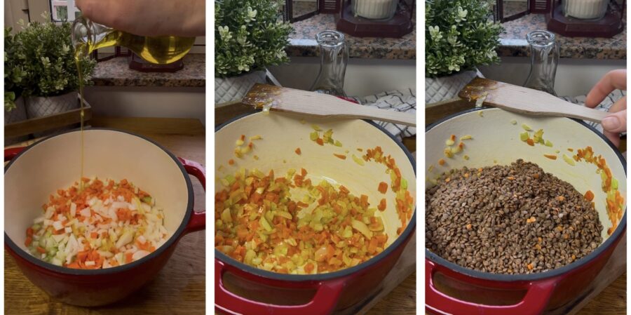 Linzen- en aardappelsoep, het recept van grootmoeder, maar meer een romige linzen- en aardappelsoep met wortels waaraan we veel lekkere gekruide broodcroutons toevoegen, gemaakt met het stevige brood dat ik vaak maak. Het recept voor romige aardappel- en linzensoep is vegetarisch en veganistisch, geschikt voor iedereen, eenvoudig, voedzaam en rijk, net als het recept voor de bonen- en aardappelsoep of dat voor kikkererwten. De Mediterrane keuken is rijk aan smakelijke veganistische gerechten en we merken het niet eens altijd; voorbeelden zijn talrijk, van de Siciliaanse auberginecaponata tot de meer traditionele pasta- en kikkererwtensoep, maar ook de pizza in zijn eenvoudigste vorm, de Pizza Margherita, en niet te vergeten de oneindige varianten en recepten voor zelfgebakken brood. Vandaag, om onze reis door de vegetarische recepten van de Mediterrane keuken voort te zetten, bereiden we de linzen- en aardappelsoep, een snel en eenvoudig recept van mijn grootmoeder, gemaakt met een goede groentebouillon en perfect om een gezonde, vezelrijke en voedzame eenpansmaaltijd op tafel te zetten. Klaar om naar de keuken te gaan? Laten we ontdekken hoe je de grootmoeders linzensoep met aardappel, wortel, selderij en ui maakt. Voordat we beginnen, herinner ik je eraan dat je mijn Facebookpagina (hier) en mijn Instagram-profiel (hier) kunt volgen om op de hoogte te blijven.
