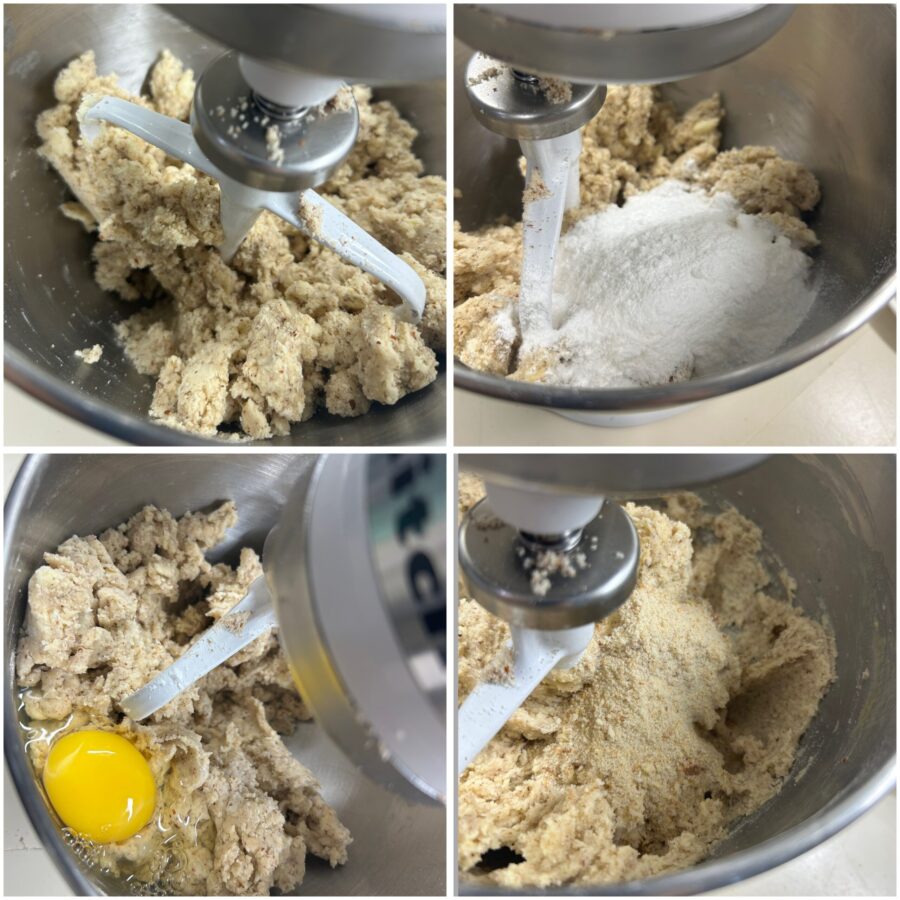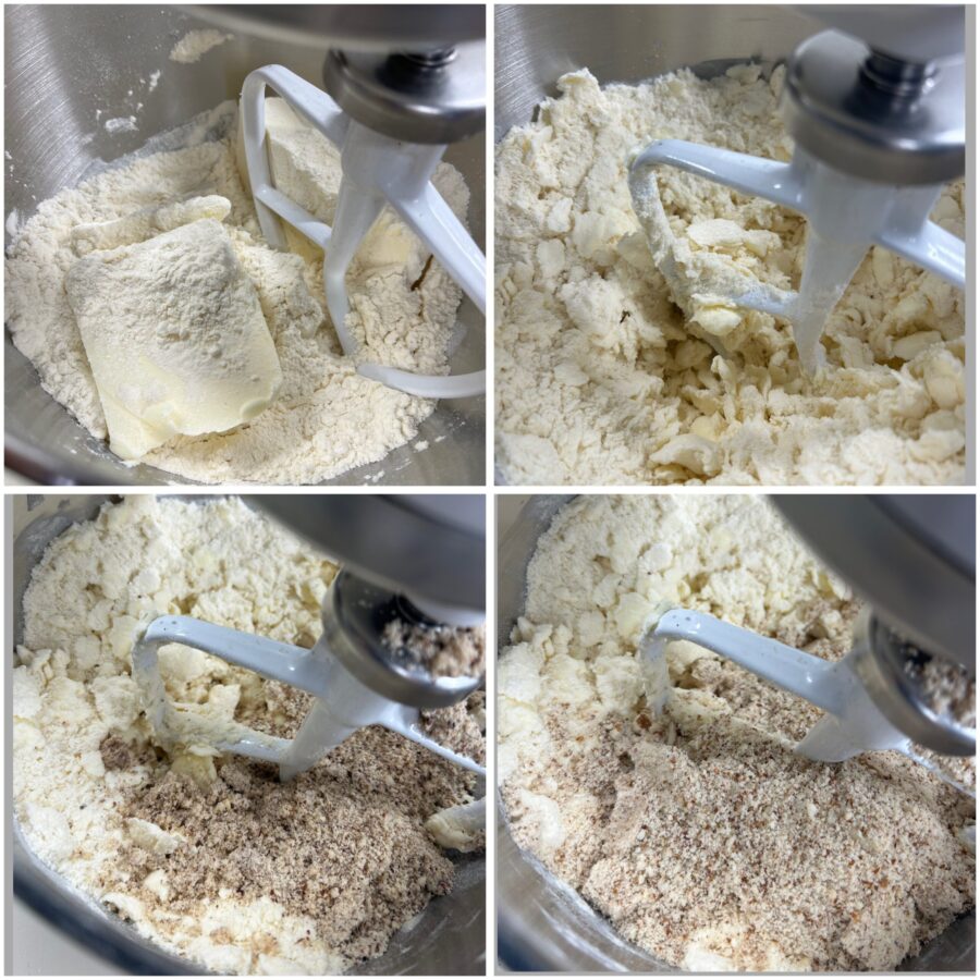 Voor het deeg van de Linzer-torte kun je met de hand kneden, maar als je een keukenrobot met platte klopper hebt, gaat het veel sneller.