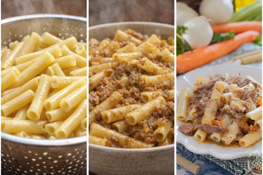 Traditioneel wordt deze saus gebruikt om ziti of candele te kruiden, pastavormen die de saus goed vasthouden, maar je kunt ook andere korte geribbelde pastavormen kiezen. Indien gewenst kun je het gerecht afmaken met een snufje geraspte Parmigiano of Pecorino.