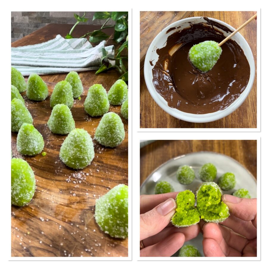 Olivette van Sant’ Agata: het originele recept van het klooster en de legende die erbij hoort. De olivette van Sant’Agata zijn een typisch Cataniaans zoet, nauw verbonden met de Agatijnse traditie zoals de beroemde Minnuzze di Sant’Agata of cassatelle, en maken deel uit van de grote Siciliaanse keuken en de vele grootmoedersrecepten. Als je tussen januari en februari in Catania bent, zul je zien dat de toonbanken van banketbakkers, cafés en bakkers vol staan met prachtige en bijzondere groene zoetigheden: de olivette van Sant’Agata. Maar wat zijn de olivette van Sant’ Agata? De Cataniaanse olivette zijn kleine, geurige dessertjes op basis van amandelen en suiker, traditioneel verbonden met het feest van de patrones Agata. Tijdens de feestdagen tonen de kraampjes in het centrum, vol torrone, gekarameliseerde amandelen, torroncini en vele andere lekkernijen, hun rijkdom. Waar komt de traditie van de olivette van Sant’Agata vandaan? De oorsprong van dit gebakje is ontleend aan legenden die het leven van Agata vertellen. Eén verhaal bijvoorbeeld vertelt dat de jonge vrouw, voorgeleid naar het proces door de soldaten van Quinziano, zich bukkend om een schoenriem vast te maken, een wilde olijfboom voor zich zag verschijnen. Een andere legende vertelt dat Agata per ongeluk tegen een onvruchtbare olijfboom stootte: bij haar aanraking begon de boom, op onverklaarbare wijze, vruchten te dragen. De mede-inwoners van Agata namen na het martelaarschap van de jonge vrouw gewoontegetrouw de gewoonte aan om de olijven van die boom te plukken en te bewaren of als wonderbaarlijke vruchten weg te geven. Misschien is juist ter nagedachtenis aan dat gebeuren, door de Benedictinessen van het klooster in Catania, een marsepeintaartje ontstaan dat qua vorm, formaat en kleur een beetje aan een olijf doet denken. Om van dit zoete te genieten — dat ter plaatse zeker het lekkerst en meest karakteristiek is — hoef je niet naar Catania te reizen: de bereiding is namelijk zo eenvoudig dat het werkelijk voor iedereen te doen is! Laten we naar de keuken gaan en samen ontdekken hoe je de olivette van Sant’Agata maakt. Voordat we beginnen, wil ik je eraan herinneren dat je mijn pagina’s kunt volgen om op de hoogte te blijven van mijn recepten: Facebook en mijn profiel Instagram.