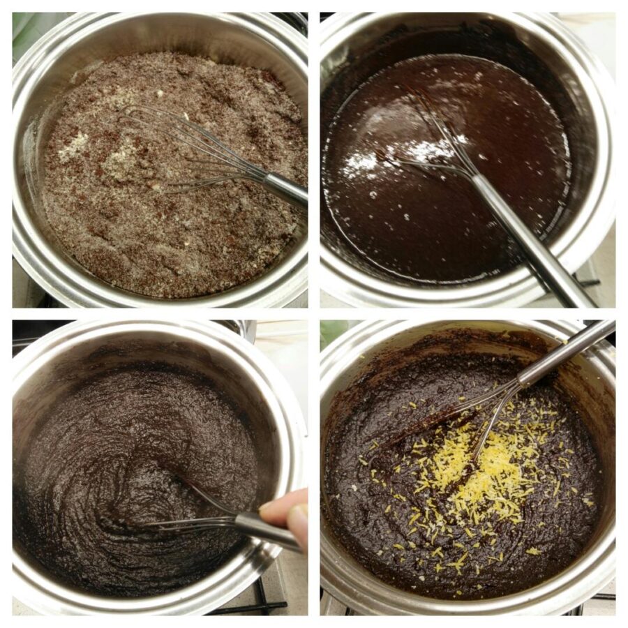 • Bereid de vulling de avond vóór het vormen van de koekjes. Rooster de amandelen met hun vel en maal ze fijn; maal de geroosterde kikkererwten tot meel. (Geroosterde kikkererwten zijn een veelvoorkomende snack in Sicilië; als je ze niet kunt vinden, gebruik dan gewoon kikkererwtenmeel). Doe de fijngehakte amandelen, de suiker, het kikkererwtenmeel, de kaneel en eventueel fijngehakte kruidnagels in een ruime pan, verdun langzaam met het water, zet op het vuur en roer met een garde tot je een dikke crème krijgt. Als het gaar is, voeg je de geraspte citroenschil toe, roer je door en laat je het geheel een hele nacht afkoelen.