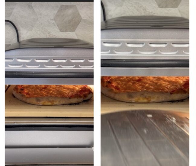 De pizza is klaar en moet meteen worden gegeten; de restjes kun je in de koelkast bewaren en de volgende dag opwarmen voordat je ze eet. Natuurlijk is het niet zo lekker als vers uit de oven.