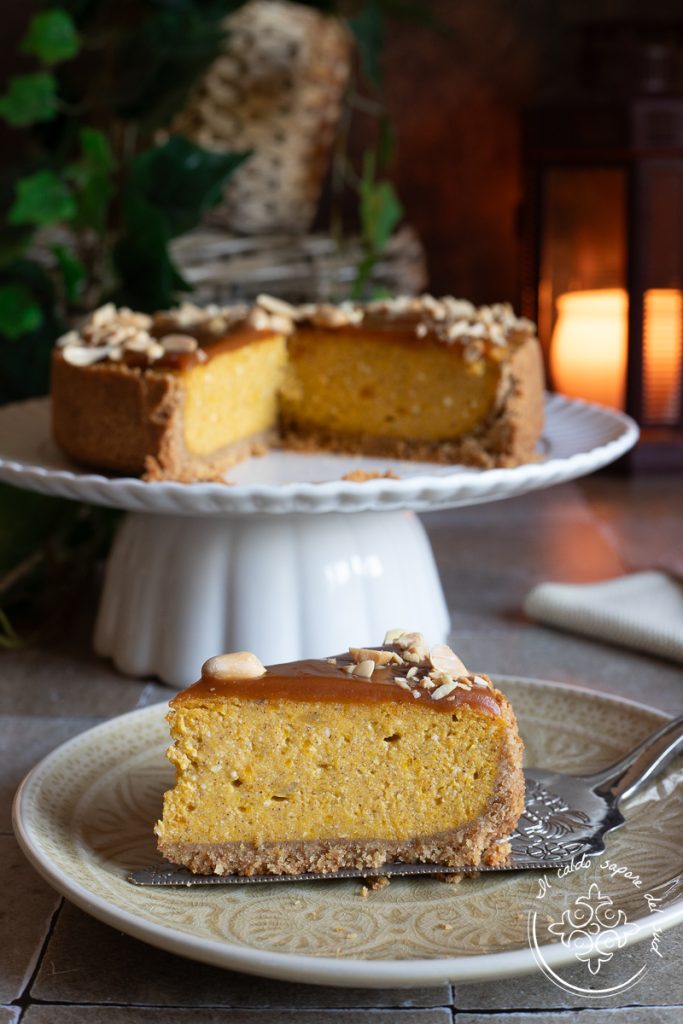 Pompoen-cheesecake met gezouten karamel, een verrukkelijk recept perfect voor de herfst. De POMPOEN-CHEESECAKE MET GEZOUTEN KARAMEL is een herinterpretatie van mijn traditionele pompoen-cheesecake, een seizoensgebak dat is geïnspireerd op de klassieke New York Cheesecake, maar met een volledig Italiaans karakter zoals een gebakken cheesecake met ricotta en room. Een dessert waarin je bij elke romige en omhullende hap smelt. Een goudbruine, smakelijke bodem van boterkoekjes en een zachte, romige vulling van ricotta en pompoen, overgoten met een gezouten karamelsaus, geven ons een waar feest van smaken en puur genot! Perfect als ontbijt, tussendoortje of als afsluiting van een maaltijd. De pompoen-cheesecake met gezouten karamel is hét herfstgebak en verwarmt het hart bij de eerste eenvoudige, omhullende hap. Klaar om hem samen met mij te maken? Laten we meteen naar de keuken gaan en hem samen bereiden. Vergeet niet dat je mijn Facebook-pagina (hier) en mijn Instagram-profiel (hier) kunt volgen en dat je hier ook een verzameling met makkelijke cheesecake-recepten vindt.