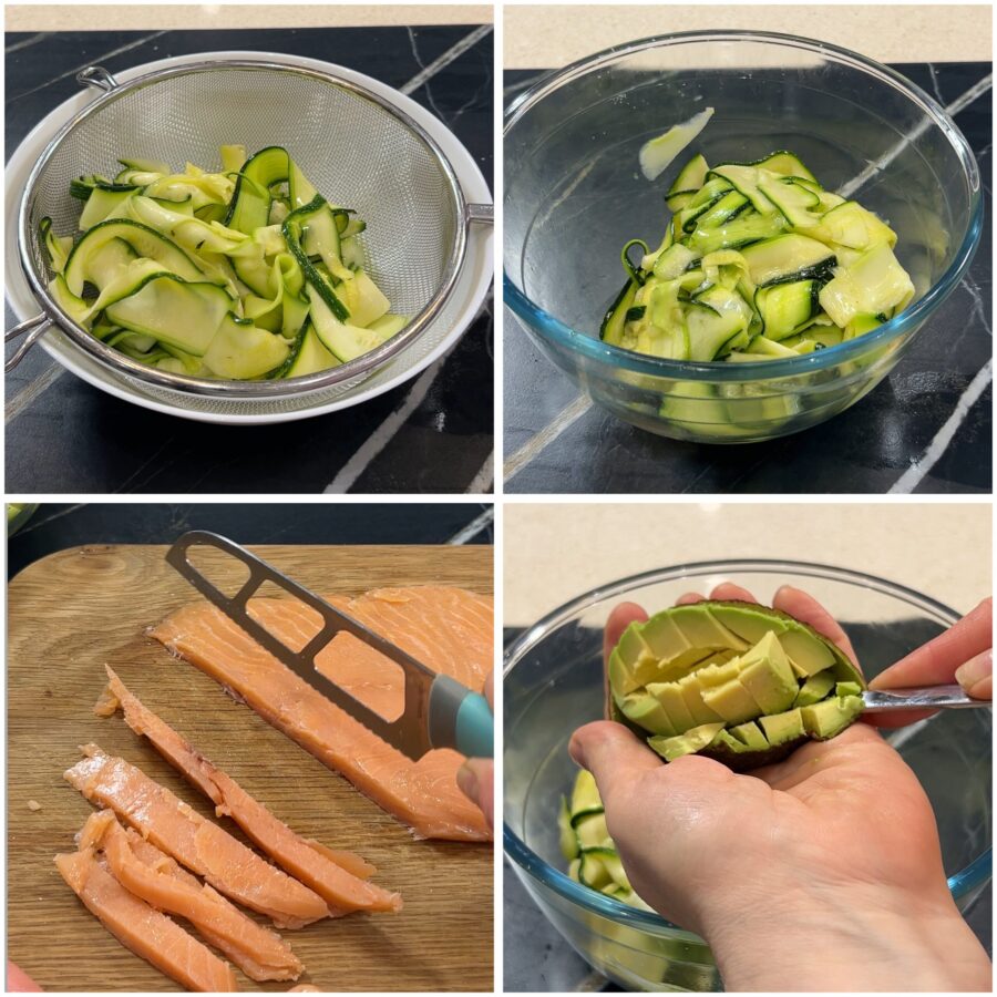 Stappen om de rauwe courgettesalade met zalm en avocado te maken