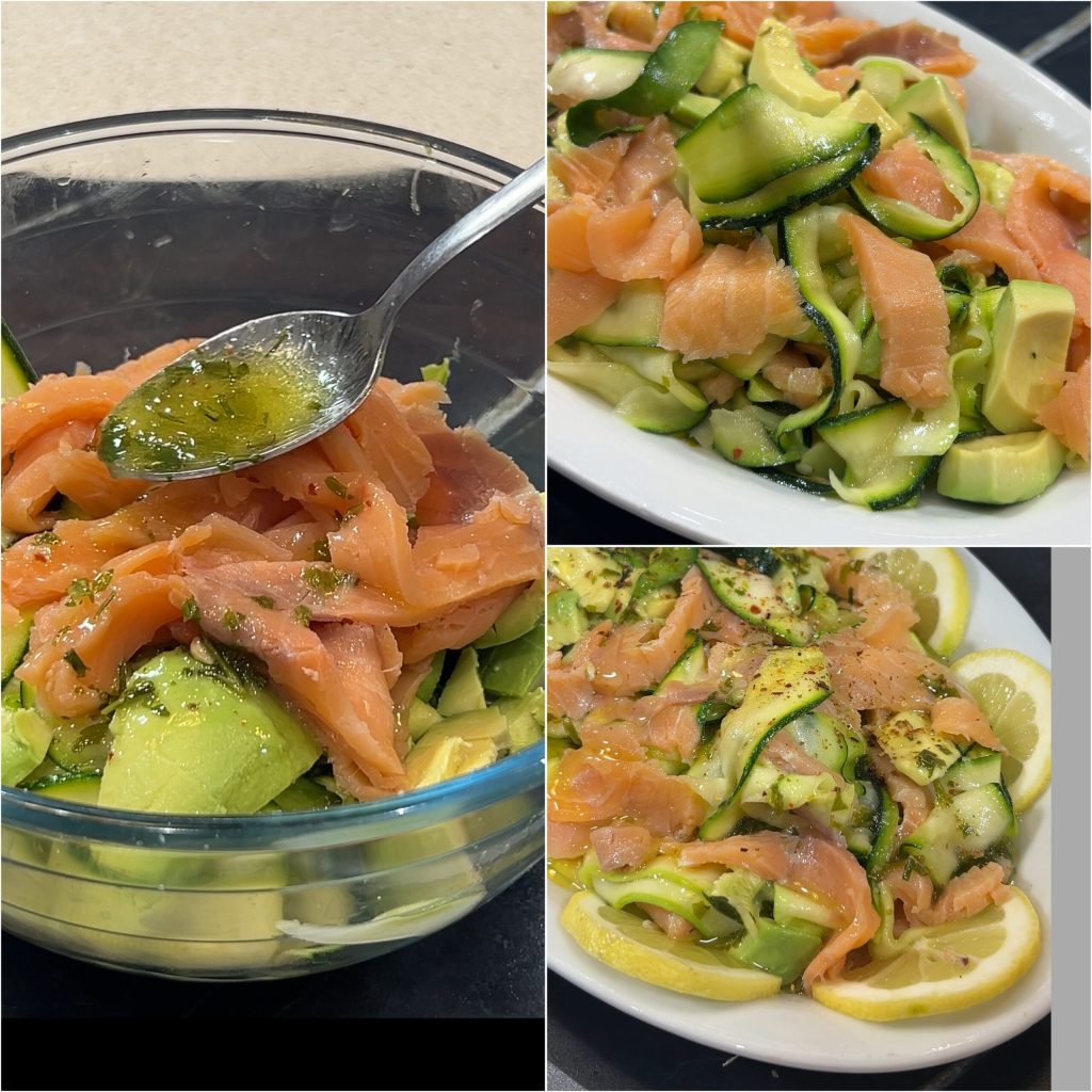De rauwe courgettesalade met zalm en avocado is een fris, licht en snel gerecht, perfect voor warmere dagen of wanneer je weinig tijd hebt maar toch van smaak wilt genieten.