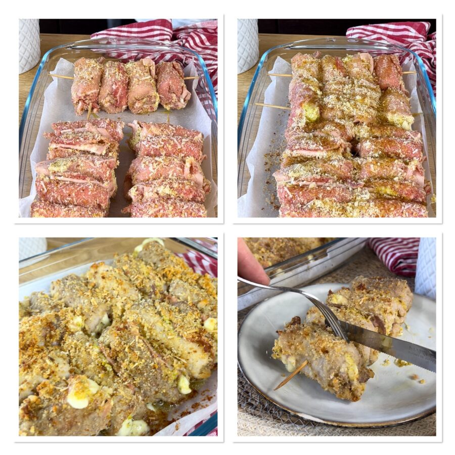 Rolletjes van vlees met pistache en mortadella, gemakkelijk, snel en ontzettend smakelijk. Als je van recepten met pistache houdt zoals wij, mag je dit recept absoluut niet missen, want de Siciliaanse rolletjes met mortadella en pistache met een romige, smeltende vulling zullen je doen watertanden. Kleine hapklare stukjes opgerold vlees, bedekt met een lichte krokante paneerlaag zonder eieren, gevuld met mortadella, kaas en Philadelphia en rijkelijk bestrooid met fijngehakte pistachenoten — je zult er verliefd op worden! Als je op zoek bent naar een snel en feestelijk hoofdgerecht, is dit recept perfect; je kunt het ook maken met kip, kalkoen of kalfsvlees en zelfs in de pan bereiden! Wil je het ook maken? Laten we samen in de keuken ontdekken hoe je deze rolletjes met mortadella, pistachenoten en Philadelphia maakt!