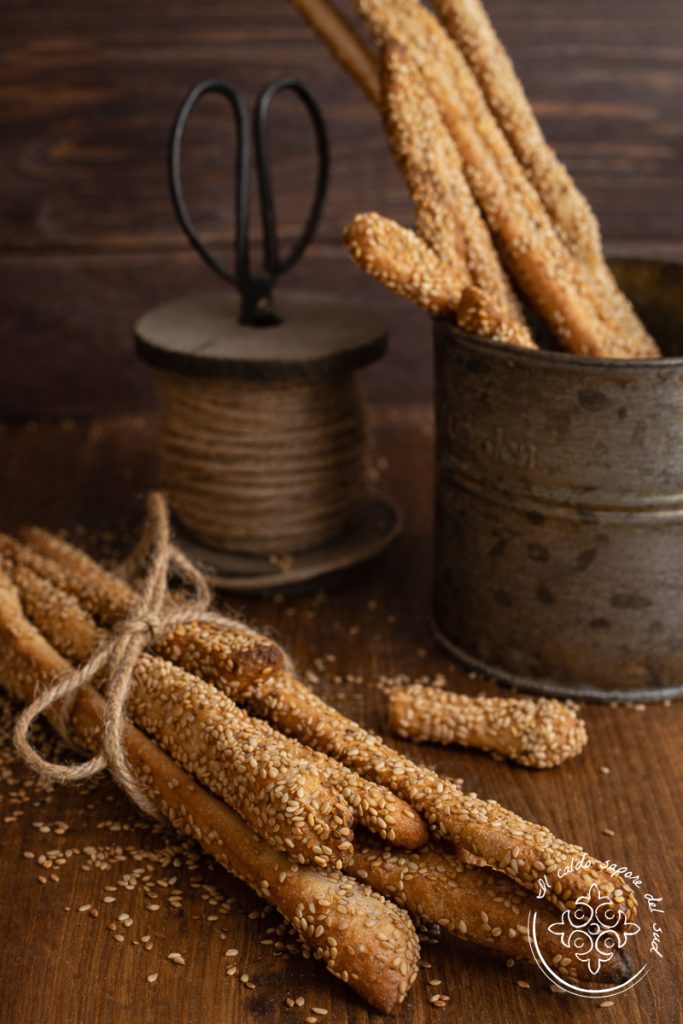 Deze zelfgemaakte sesamgrissini zijn perfect als voorgerecht, om te combineren met vleeswaren en kazen, of als vervanging van brood, zoals de grissini met tomaat. Het recept is stap voor stap uitgelegd, met echte foto’s die elke fase van het deeg laten zien, van het begin tot het einde van de bakfase.