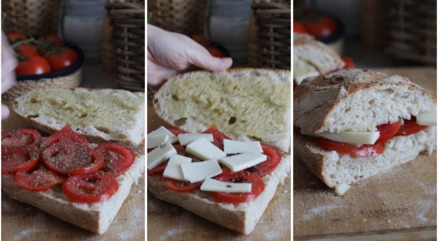Je kunt het pane cunzato ook vullen met gegrilde groenten, gefrituurde aubergines, of eenvoudigweg met zout, olie en peper.