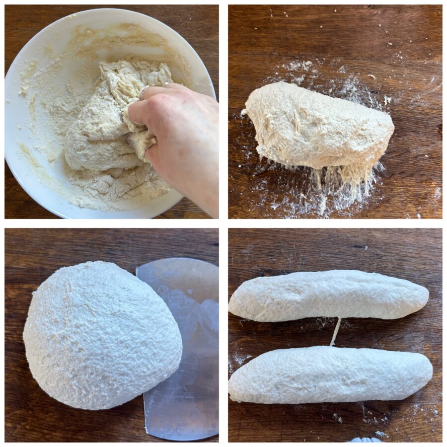 Leg het op het werkvlak, kneed het nog een paar minuten, laat het 5 minuten rusten en vorm dan twee langwerpige stukken.
