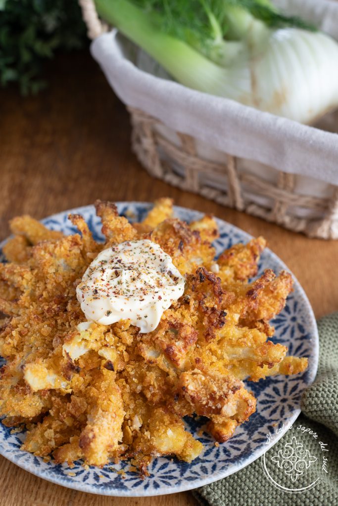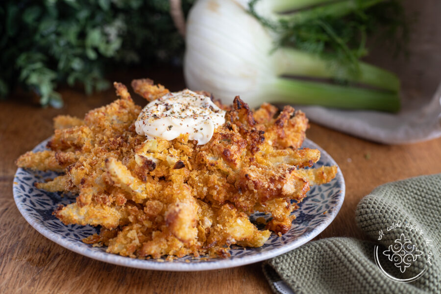 Hele gefrituurde venkelrozen in de airfryer. Goudbruine, krokante en smaakvolle hele venkels, bereid in de airfryer, zijn een bijgerecht dat eenvoudig, snel, smaakvol en heel gezond en je bij de eerste hap zal veroveren, net als Venkel uit de oven op mediterrane wijze of Venkel gratin met melk. Het gaat om venkel gegratineerd zonder bechamelsaus, krokant gefrituurde venkel, maar met weinig olie bereid en in de airfryer; natuurlijk kun je, als je geen airfryer hebt, de oven gebruiken. De Krokante venkel uit de airfryer zijn snel klaar, ze zien er feestelijk uit en zijn perfect om met gemak indruk te maken. Dit lekker, origineel en smaakvol venkelrecept zal je overtuigen, zelfs als je normaal niet zo gek bent op gekookte venkel: ik zeg dit omdat mijn kinderen en mijn man er ook van hielden, terwijl zij normaal alleen salades gemaakt met deze groente waarderen. Je kunt de gefrituurde venkel uit de airfryer puur eten of met een vegan mayonaise met yoghurt en avocado of met mijn lichte mayonaise met hardgekookte eieren en yoghurt. Maar laten we de keuken in gaan: ik leg het recept stap voor stap uit; eerst wil ik je eraan herinneren dat je, als je op de hoogte wilt blijven van al mijn recepten, mijn Facebookpagina kunt volgen (hier) en mijn Instagramprofiel (hier).