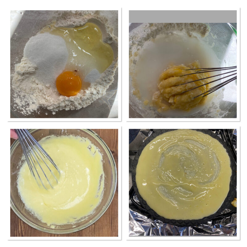 Meng tot je een vloeibaar beslag zonder klontjes hebt.