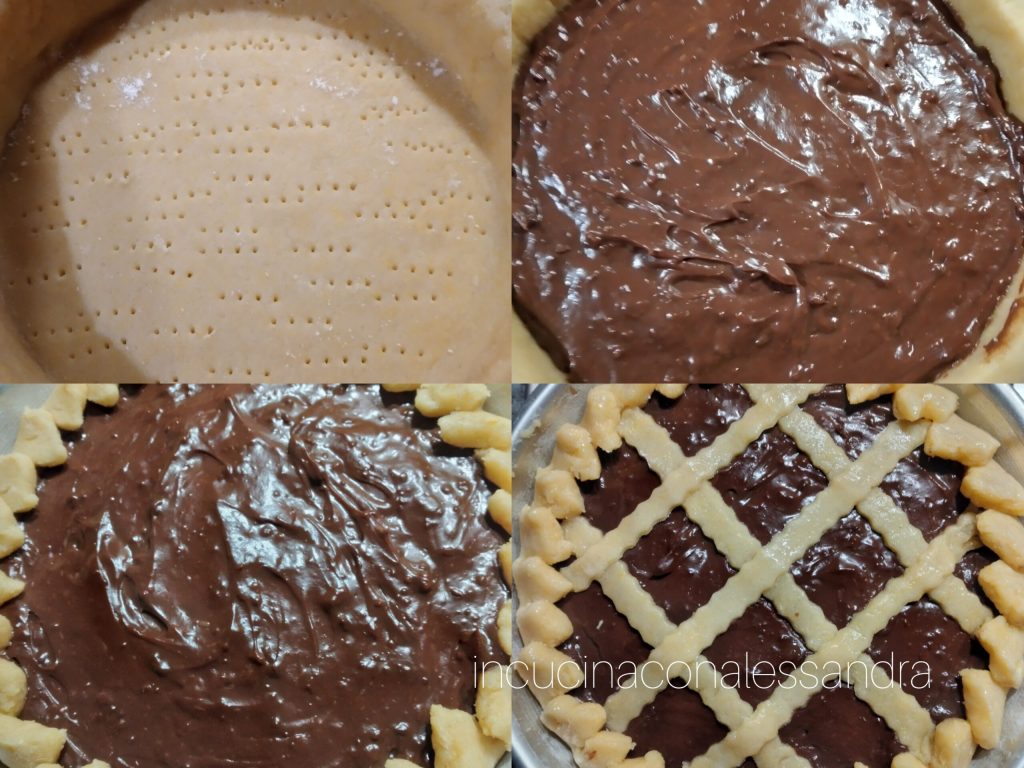 We maken de snavels. Met behulp van een mes, de rand van het zanddeeg schuin insnijden, het uitgesneden deel nemen en over zichzelf vouwen, waardoor punten langs de hele rand ontstaan. Met het bewaarde deeg stroken maken en de taart versieren.