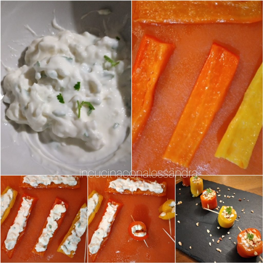 De gevulde paprika rolletjes zijn heerlijk en heel makkelijk te bereiden… perfect voor een aperitiefje of als voorgerecht, maar ze zijn ook erg lekker als hoofdgerecht. Een kleurrijk en leuk idee om op tafel te zetten en vooral een idee om paprika’s te laten eten aan kinderen.