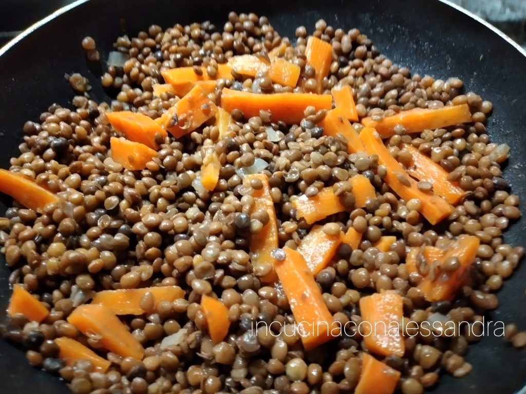 Linzen en wortelen in de pan zijn een voedzaam, licht maar smakelijk gerecht dat rijk is aan eiwitten. Het is een vegetarisch recept, gemakkelijk en snel te bereiden. Het kan ook als hoofdgerecht worden beschouwd als je een grote portie eet, als tweede gang, maar ook uitstekend als voorgerecht
