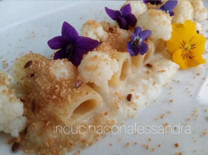 Ik raad aan om de pasta te koken in het kookwater van de bloemkool, dat is nog smakelijker. Voor een indrukwekkende presentatie, leg de pasta op de bloemkoolroom en garneer met eetbare bloemen.