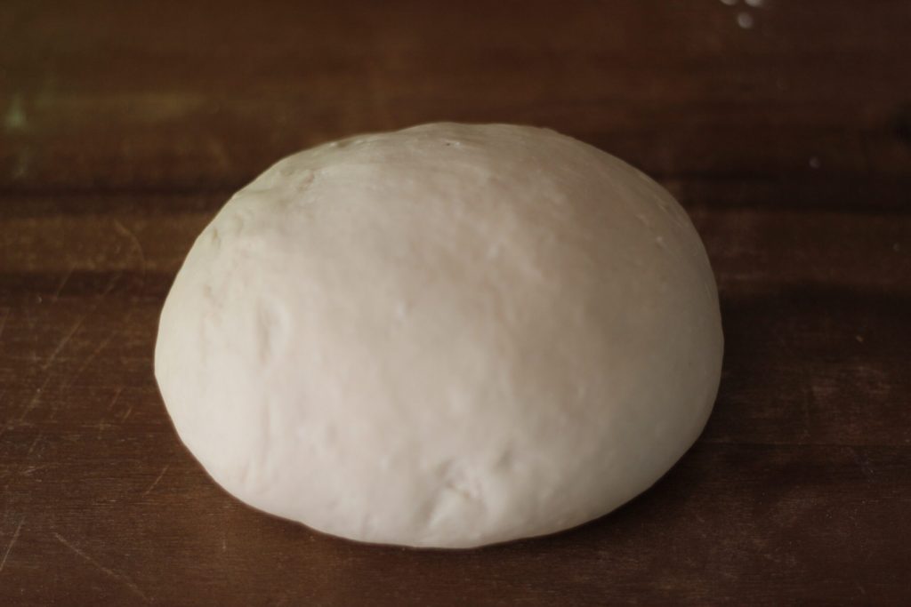 Het deeg is nu klaar. Bestuif een werkblad met bloem en kneed het deeg een paar minuten zodat het glad en homogeen wordt. Het deeg moet mooi zacht zijn.