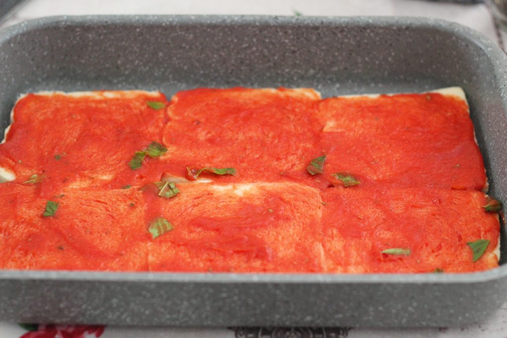 Stappen om lasagne van witbrood tomaat en mozzarella te maken