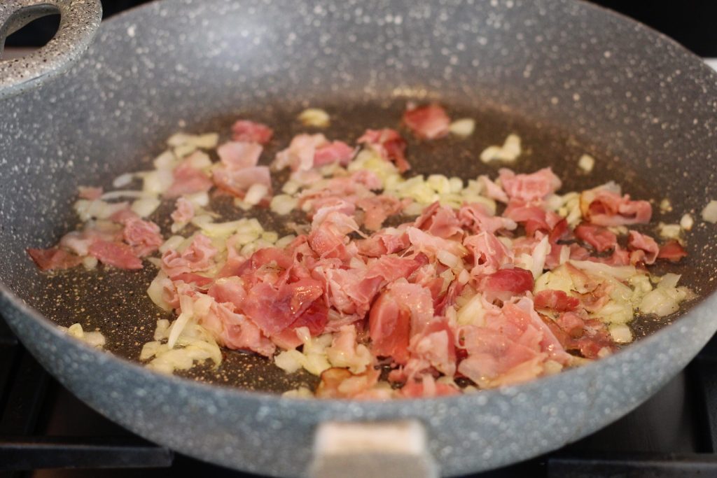Als je wilt, kun je kiezen of je het spek toevoegt of niet, of je kunt er pancetta in doen