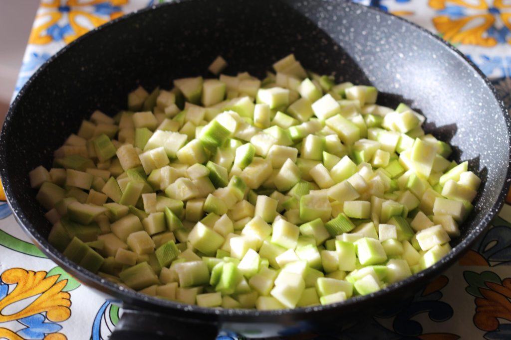 Om de vegetarische lasagne met courgette, wortels en broccoli te maken, bereid je eerst de groenten voor. Was de broccoli; ik heb de toppen van gekleurde broccoli gebruikt—oranje, wit, groen en paars—die ik in de supermarkt vond. Laat ze ongeveer 15 minuten koken in water met grof zout. Als ze zacht zijn, giet je ze af en verdeel je ze in kleine roosjes. Maak de courgettes en wortels goed schoon, schil ze en snijd ze in kleine blokjes. Pel de gele ui en snijd deze in dunne plakjes. Verhit in een ruime pan wat extra vierge olijfolie en fruit hierin de ui, courgette en wortel; bak de groenten ongeveer 15 minuten op middelhoog vuur, af en toe omscheppend en op smaak brengend met zout en peper.