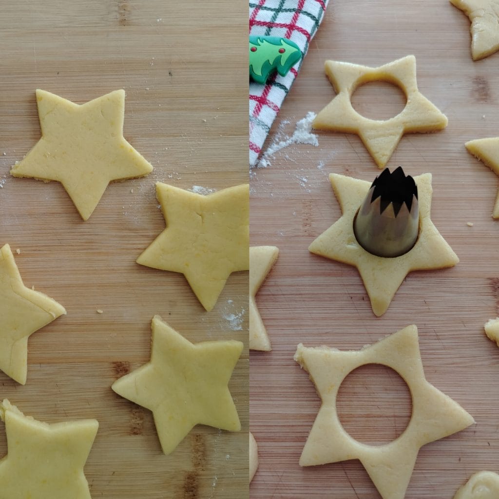 Het bereiden van deze koekjes is echt eenvoudig: meng gewoon alle ingrediënten, rol het deeg uit en snijd de sterren met de specifieke vormpjes. Maak dan het klassieke gaatje in het midden, bak ze 15 minuten en als ze afgekoeld zijn, vul ze met jam of nutella voor een nog lekkerder resultaat.