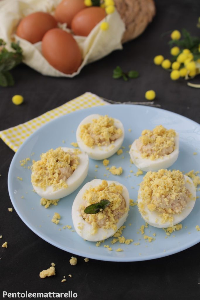 Let goed op de kooktijden, de eieren moeten goed gaar zijn om te voorkomen dat de dooiers rauw en ongeschikt zijn voor de bereiding. Als je wilt, kun je de ingrediënten rustig vervangen door smeerkaas, samen met tonijn en wat ontpitte olijven.