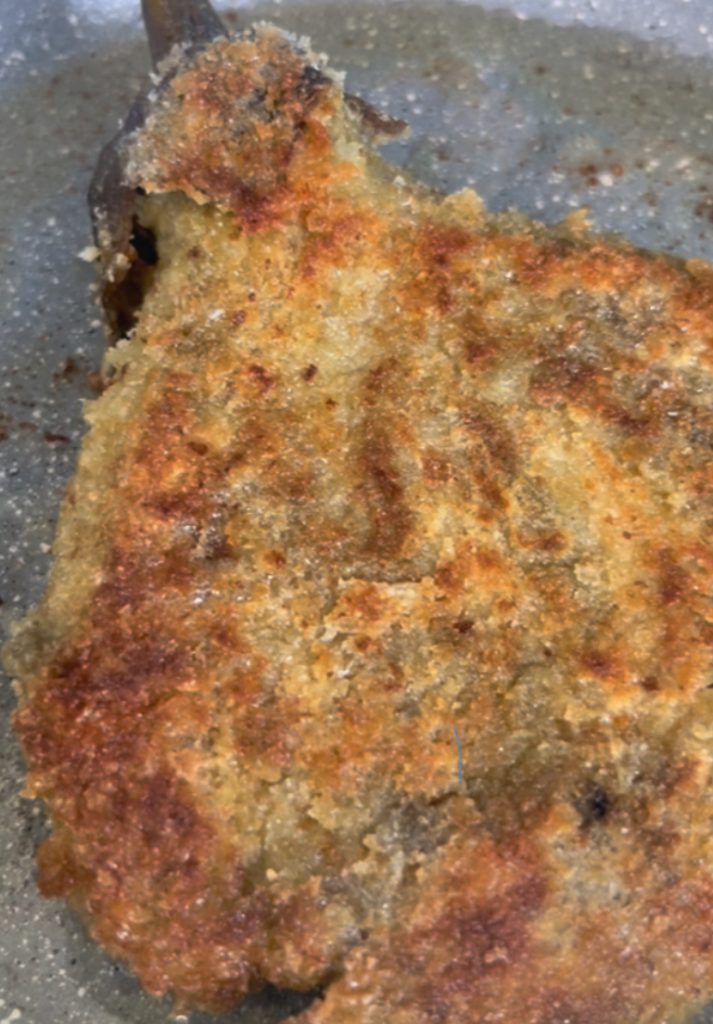 Tot slot goed bedekken met paneermeel en hetzelfde doen met de andere aubergines.
