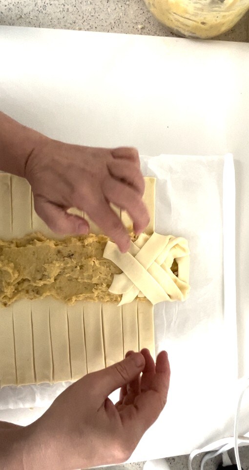 Vandaag deel ik met jullie een gemakkelijk, snel en vooral erg lekker recept, de Bladerdeegstrudel met koekjesroom en noten. Tijdens de feestdagen is het bekend dat er veel zoetigheden worden gemaakt, waaronder de klassieke banketbakkersroom die de basis vormt van vele bereidingen. Het kan dus gemakkelijk gebeuren dat er wat overblijft. Dit is, verzeker ik u, een super effectieve manier om overgebleven banketbakkersroom te gebruiken. Ik heb koekjes toegevoegd die ik thuis had, maar als u wilt, kunt u uw favoriete koekjes gebruiken, zelfs met chocolade. Ik moet zeggen dat de zoetigheden die zo snel worden gemaakt me altijd verbazen, omdat je ze bijna nooit plant, maar ze komen in je op en zijn binnen een mum van tijd op. Maar zelfs als je geen banketbakkersroom over hebt, raad ik aan om het ter plekke te maken, want het is echt de moeite waard. Als je dol bent op zoetigheden gemaakt van een overgebleven ingrediënt, lees dan ook de Gevulde romige bonbons