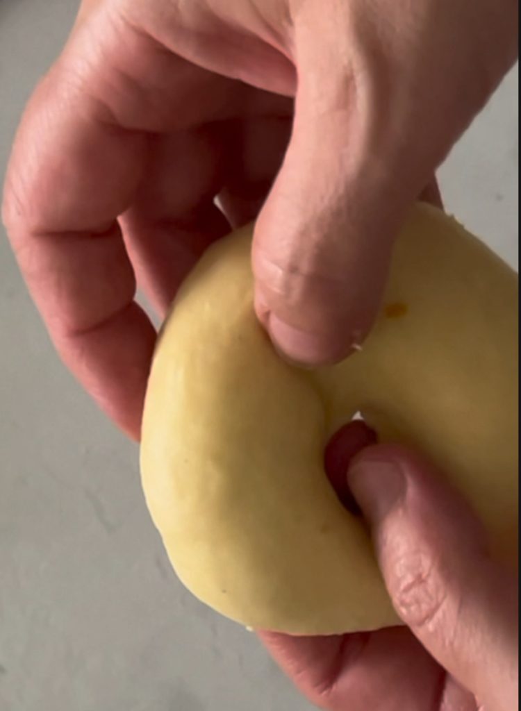 Maak een gat met je vinger alsof je donuts maakt met de grote bal.
