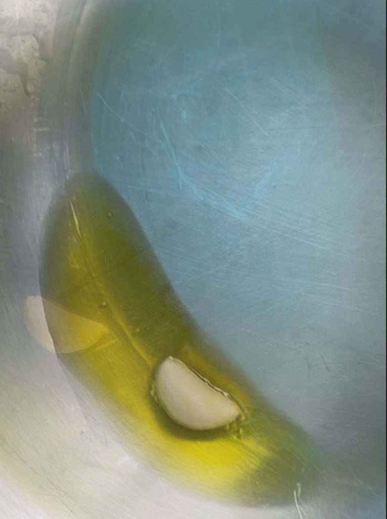 de knoflook toevoegen en lichtjes bakken zonder het te verbranden