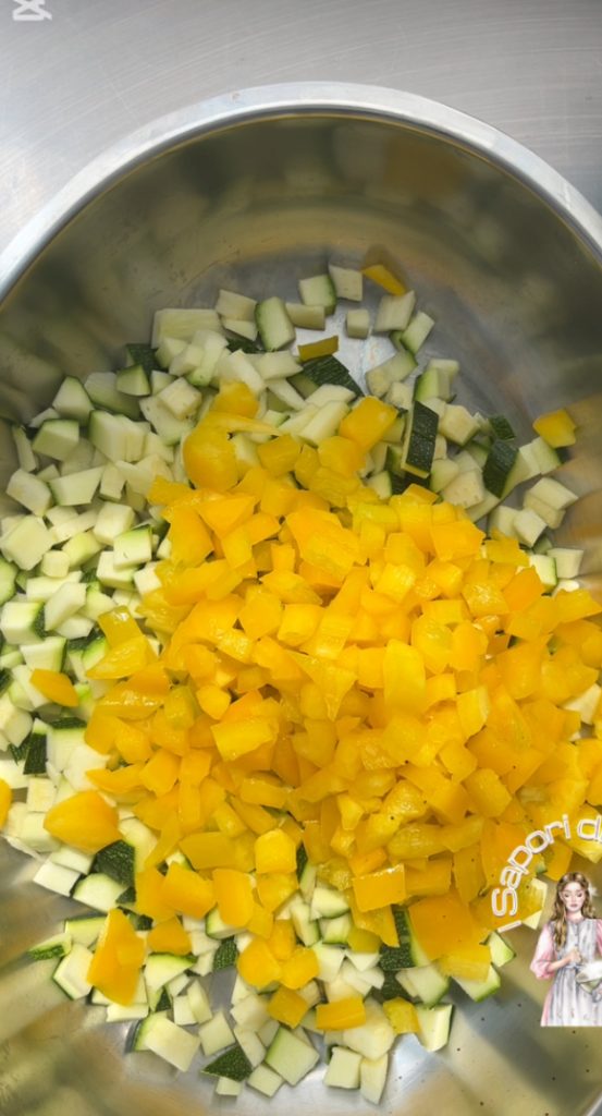 Begin met het in een kom doen van de in dunne blokjes gesneden courgette