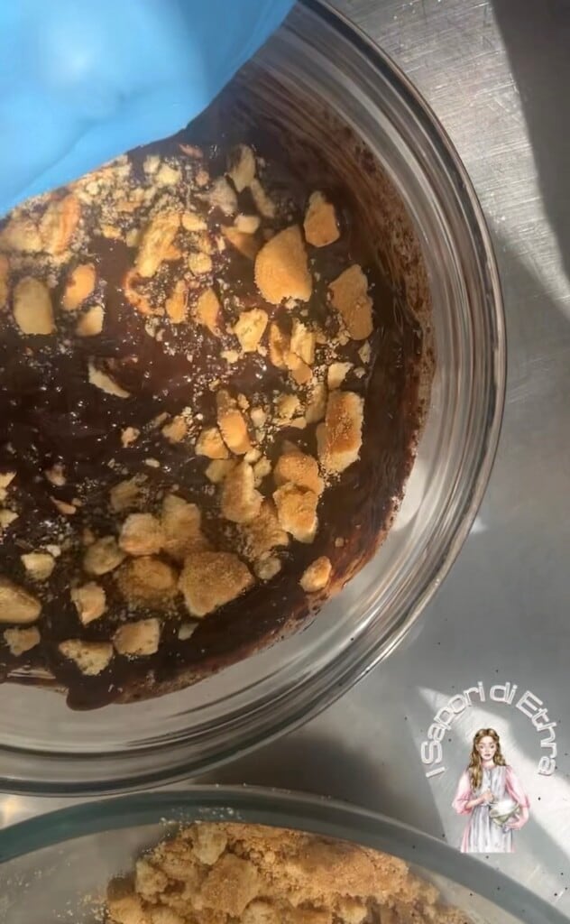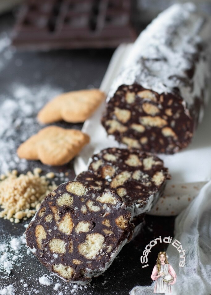 Met een mengsel van knapperige koekjes, pure cacao en gesmolten boter is deze “salami” ongekookt en klaar in slechts enkele minuten, zonder ovengebruik, waardoor het ideaal is voor een plotselinge zoete trek of een feestje met vrienden. Zijn kenmerkende vorm maakt het leuk om te serveren en te bekijken, terwijl de smeltende textuur in de mond een onweerstaanbare ervaring biedt. Het is een dessert dat herinneringen oproept aan de smaken van vroeger, in staat om zowel jong als oud te veroveren. Als goede Tarantin heb ik een variatie gemaakt door de melk te vervangen door koffie en een beetje Borsci S. Marzano-likeur toe te voegen, samen met hazelnootkruimels