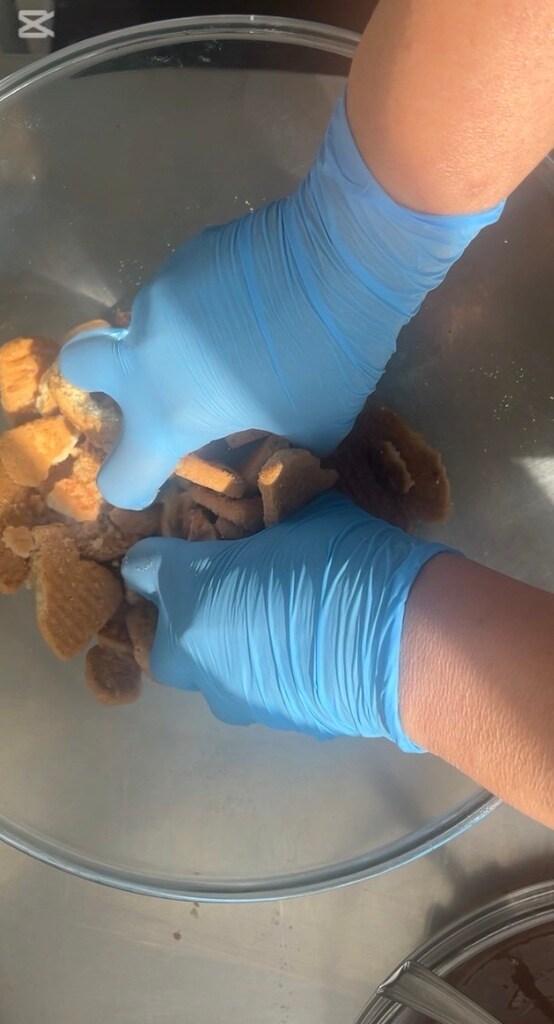 Het eerste dat je moet doen is de koekjes grof verkruimelen.