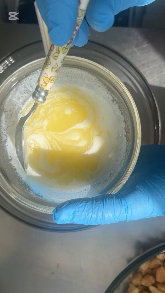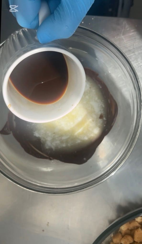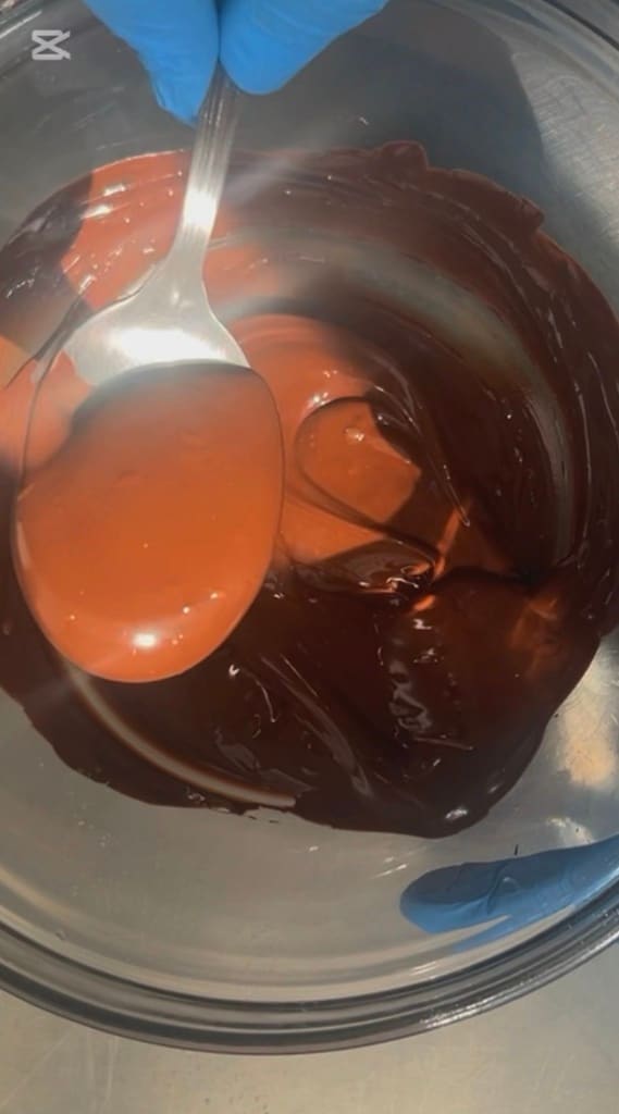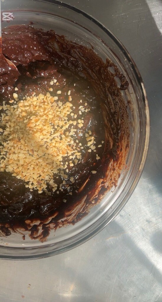Voeg de gesmolten boter toe aan de chocolade
