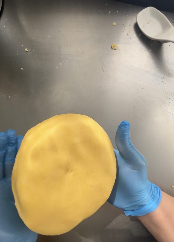 Het zanddeeg mag absoluut niet warm worden door je handen of in de keukenmachine. Als de boter smelt terwijl je ermee werkt, wordt het deeg taai en elastisch in plaats van kruimelig. Dus koude handen en bovenal boter in stukjes direct uit de koelkast. Wacht niet met bewerken, want de boter moet ijs- en ijskoud zijn. Het kan ook nuttig zijn om werkgereedschap zoals de kom, de gardes en houten lepels in de koelkast te leggen. Een andere zeer belangrijke zaak is het rusten. Hoe langer het deeg rust, hoe beter. Minimaal 30 minuten; ik maak het persoonlijk de avond ervoor voor de volgende dag.