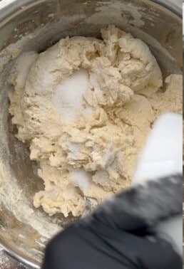 Wanneer het meel al het water heeft opgenomen, voeg je het zout toe