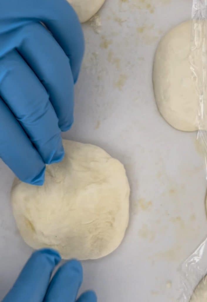 Neem stukken deeg, de grootte hangt af van hoe groot je de pizzette wilt hebben. Laat nog 1 uur rijzen, afgedekt met folie of een doek.